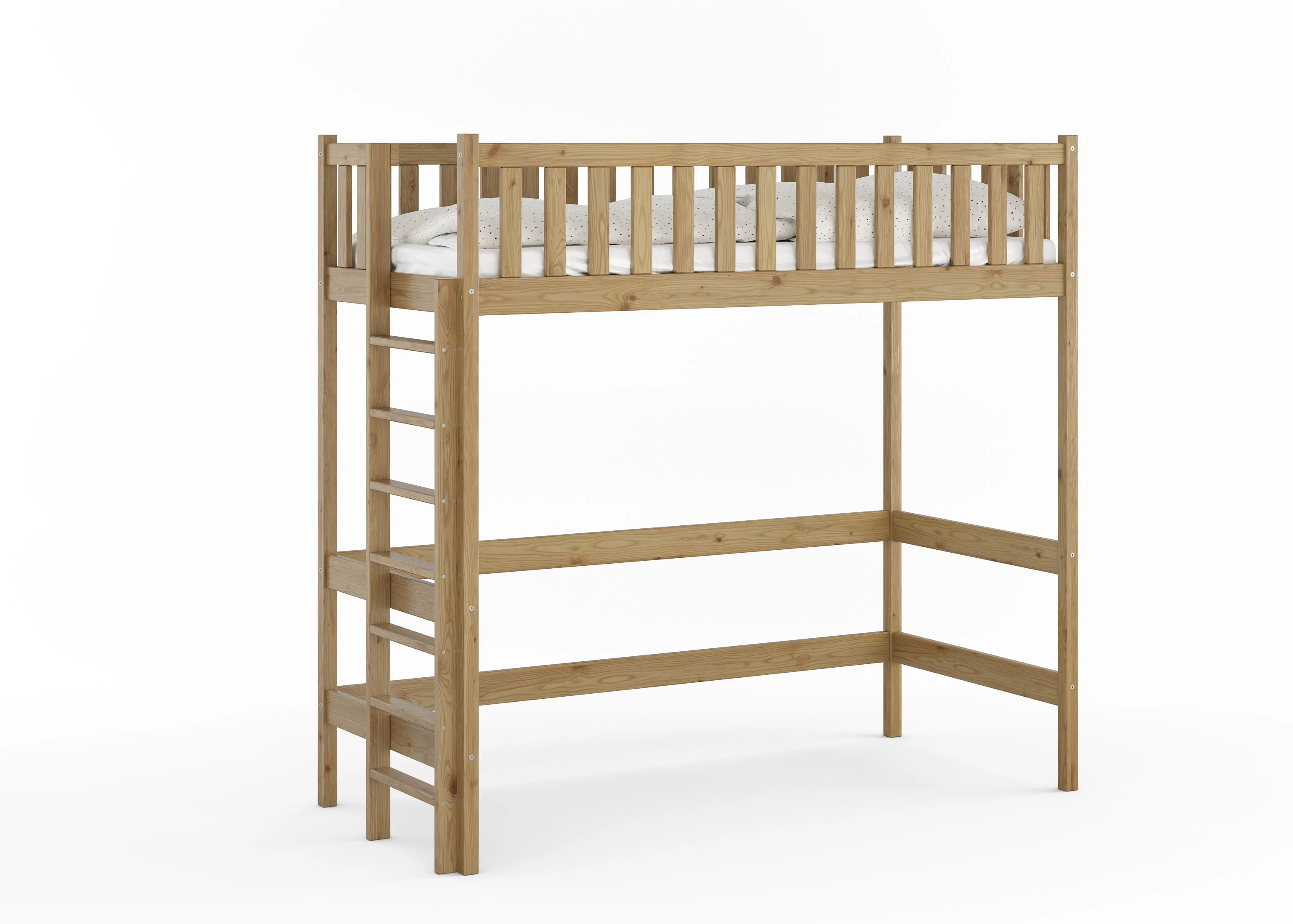 To mebel, który czerpie siłę z natury. Grube profile litego drewna i precyzyjne łączenia sprawiają, że łóżko stoi niewzruszenie – gotowe na skakanie, bitwy na poduszki i lata dorastania.