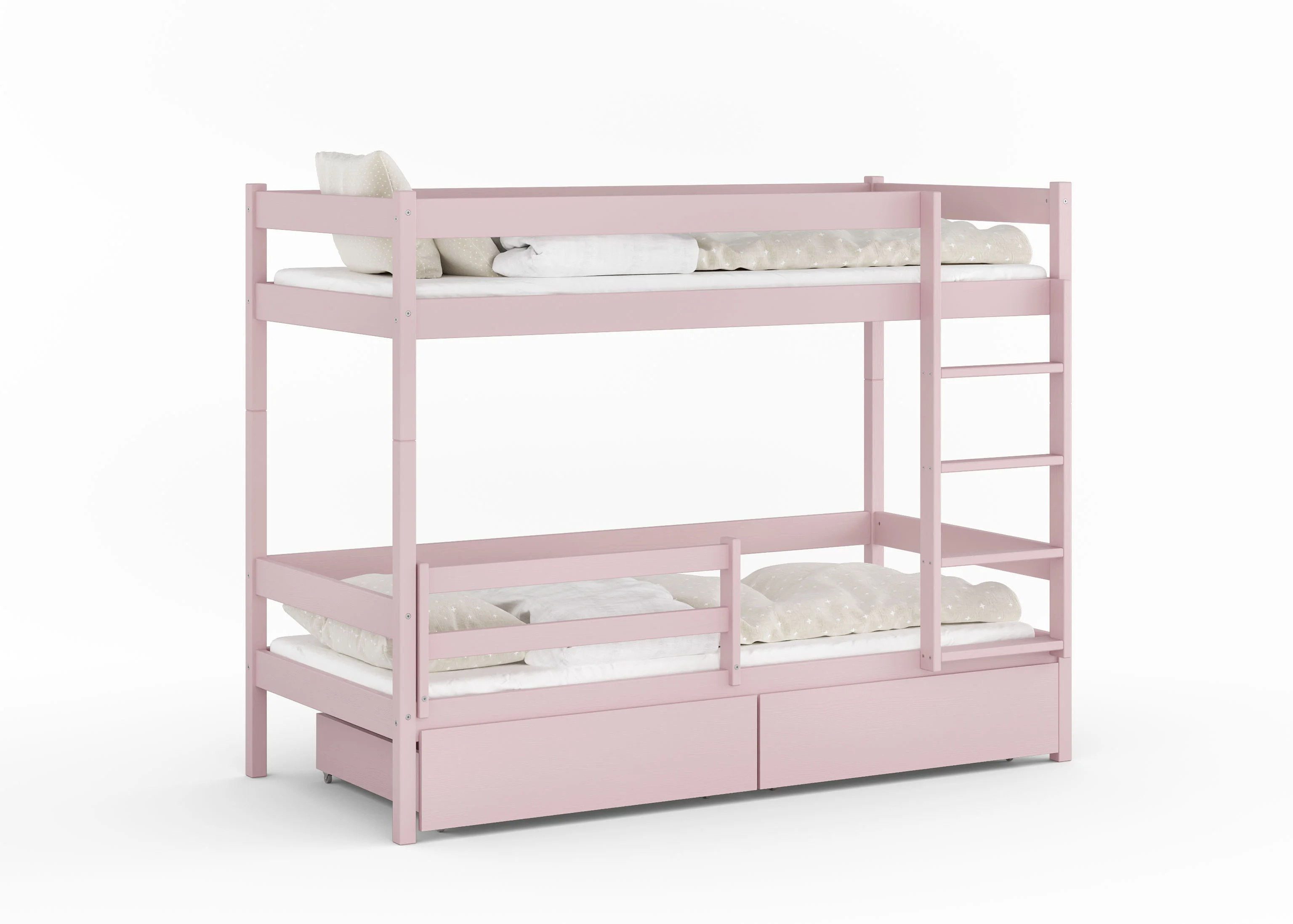 Konstrukcja o niesamowitej wytrzymałości. Każdy poziom wytrzyma aż 150 kg, więc spokojnie możesz położyć się przy dziecku i poczytać bajkę. Zastosowaliśmy solidny stelaż z grubych desek 21 mm (standardowe listwy flex to tylko 8 mm!), dzięki czemu dzieci mogą bawić się na łóżku bez żadnych obaw.