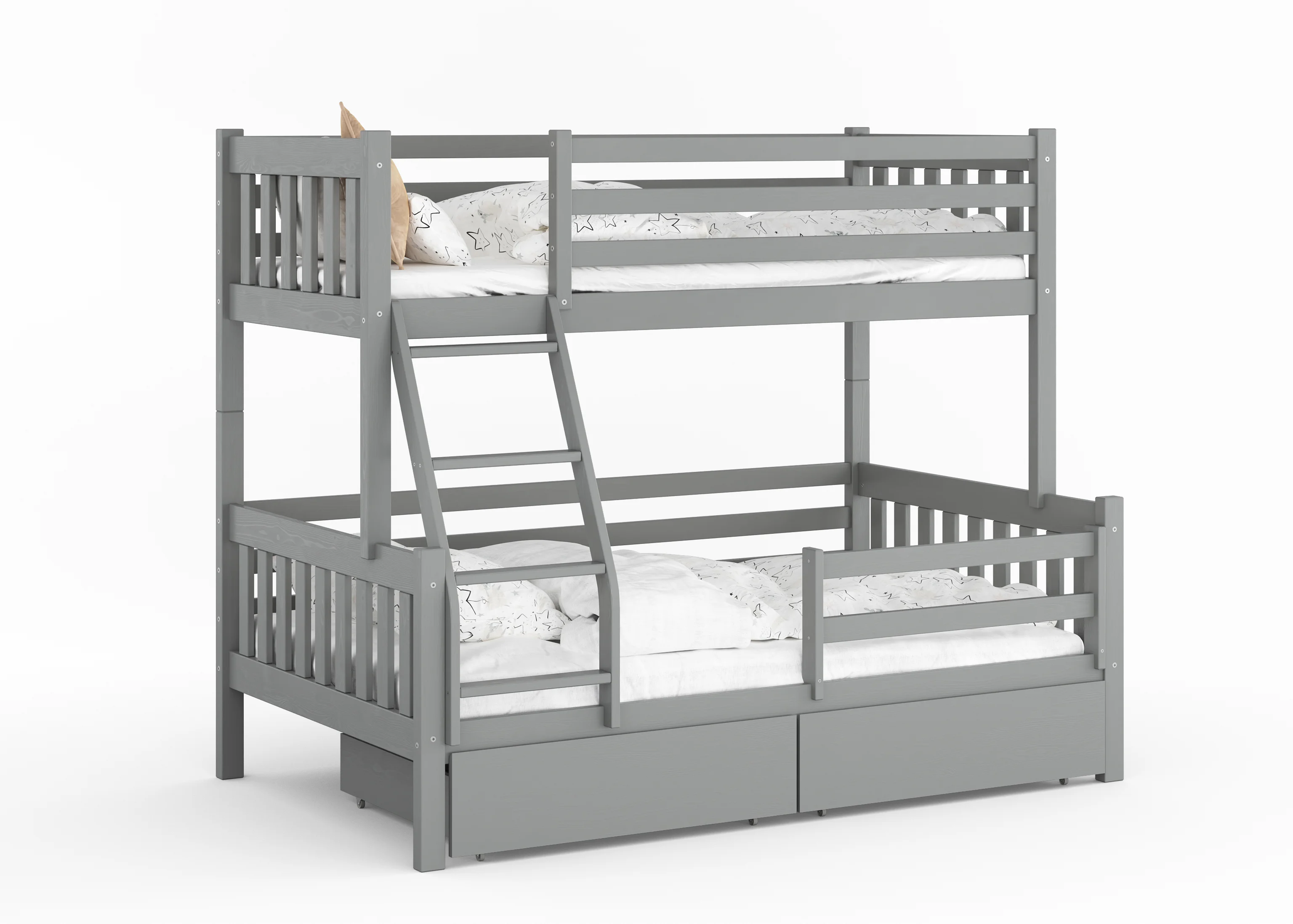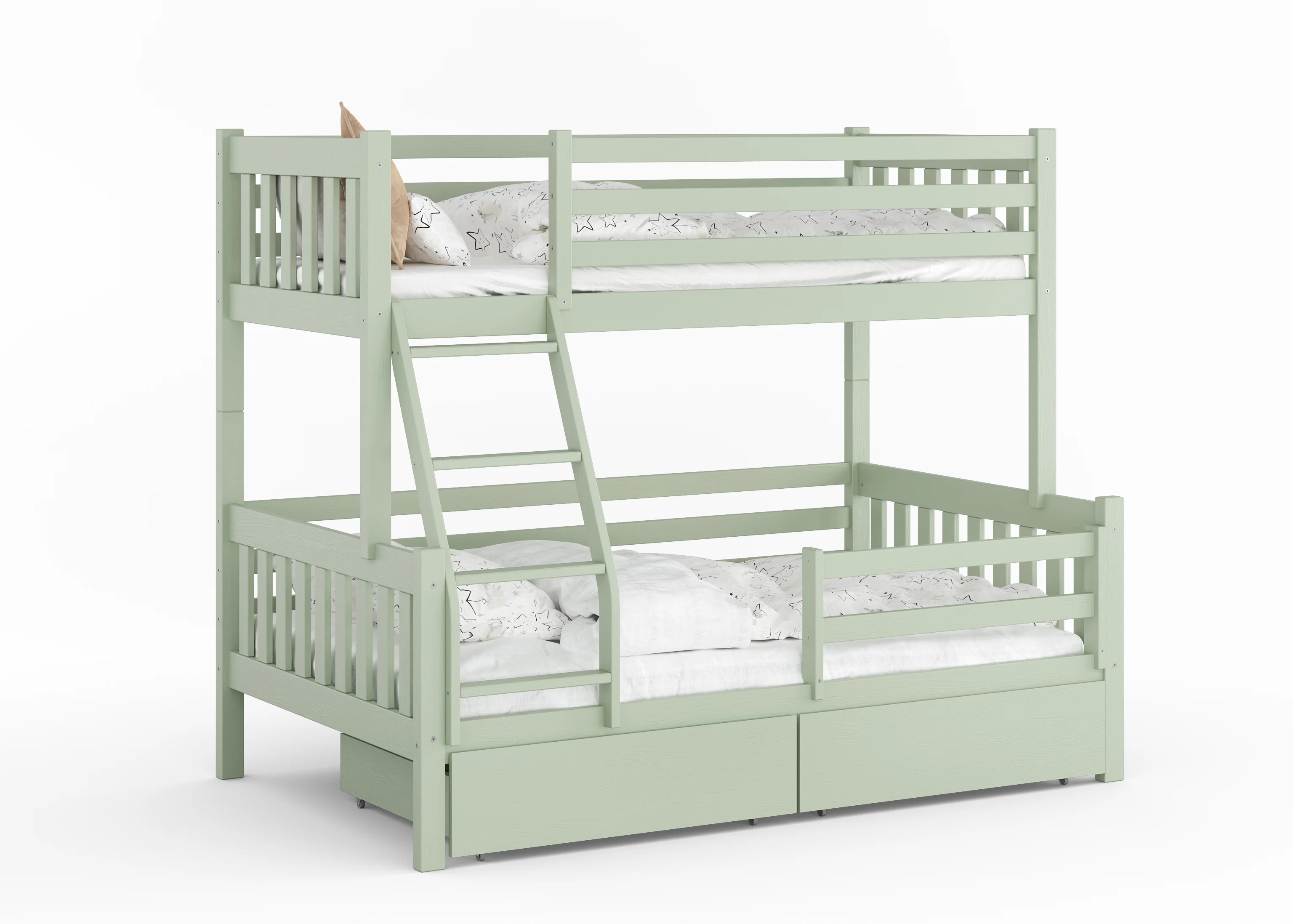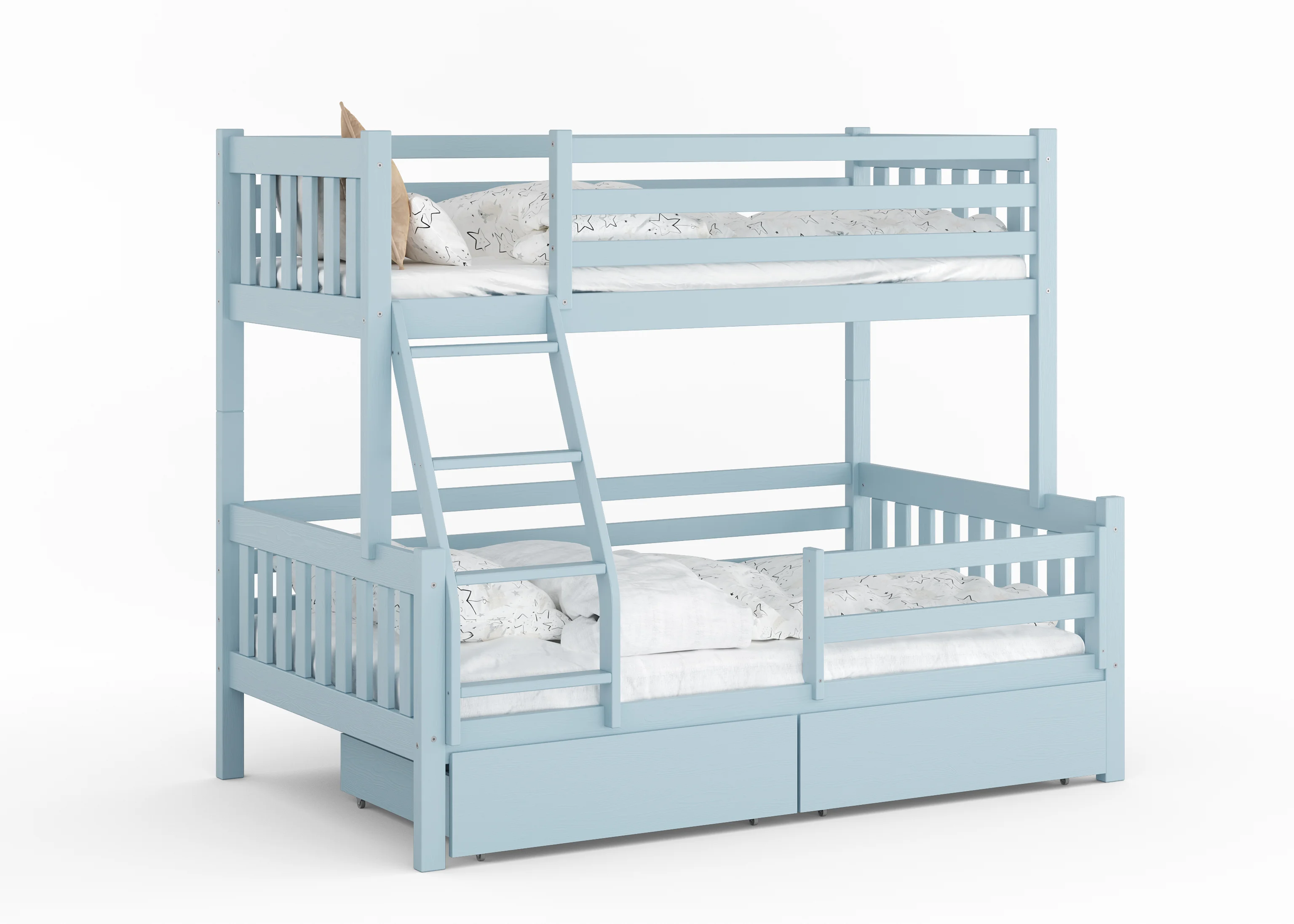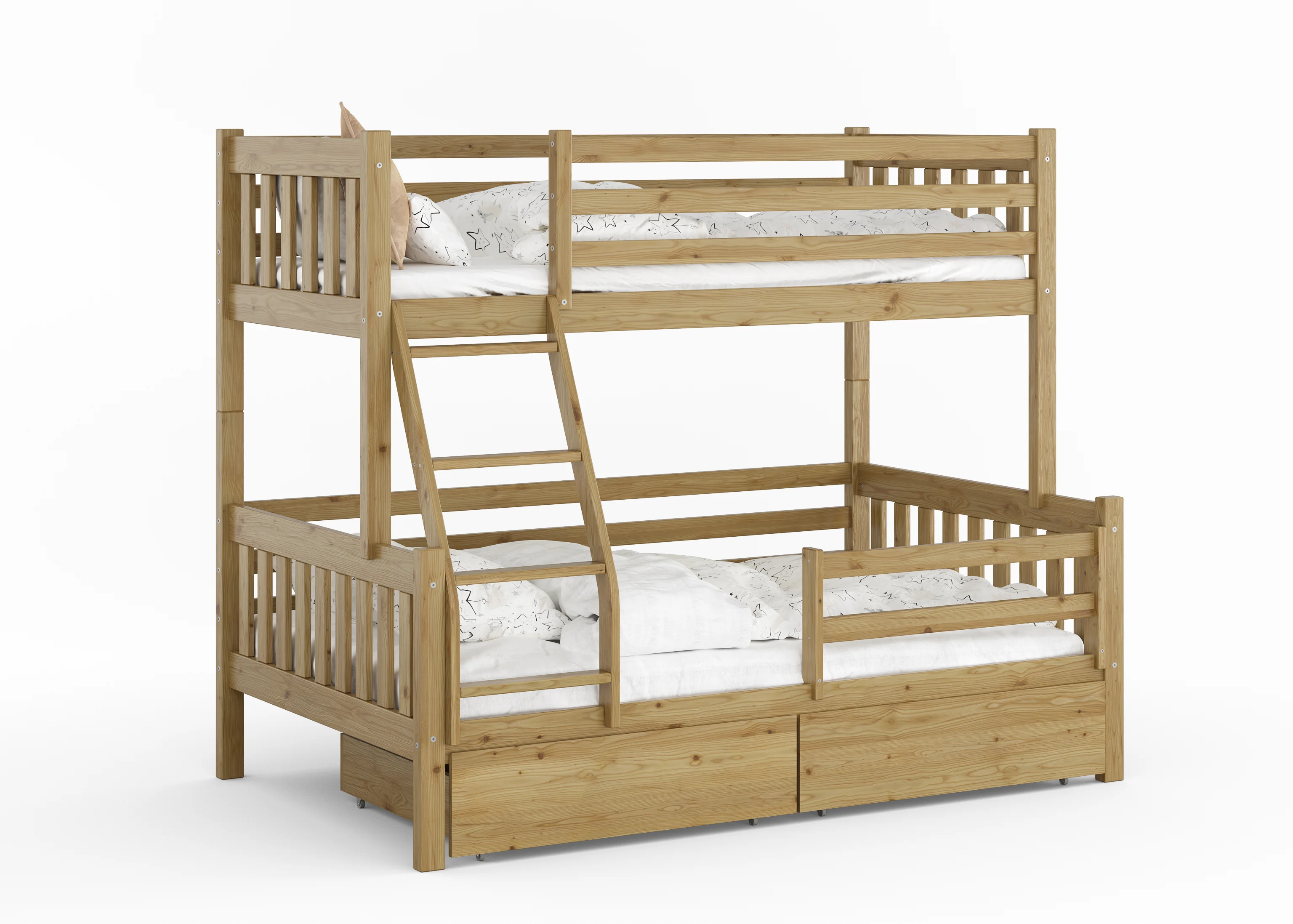 To mebel, który czerpie siłę z natury. Grube profile litego drewna i precyzyjne łączenia sprawiają, że łóżko stoi niewzruszenie – gotowe na skakanie, bitwy na poduszki i lata dorastania.