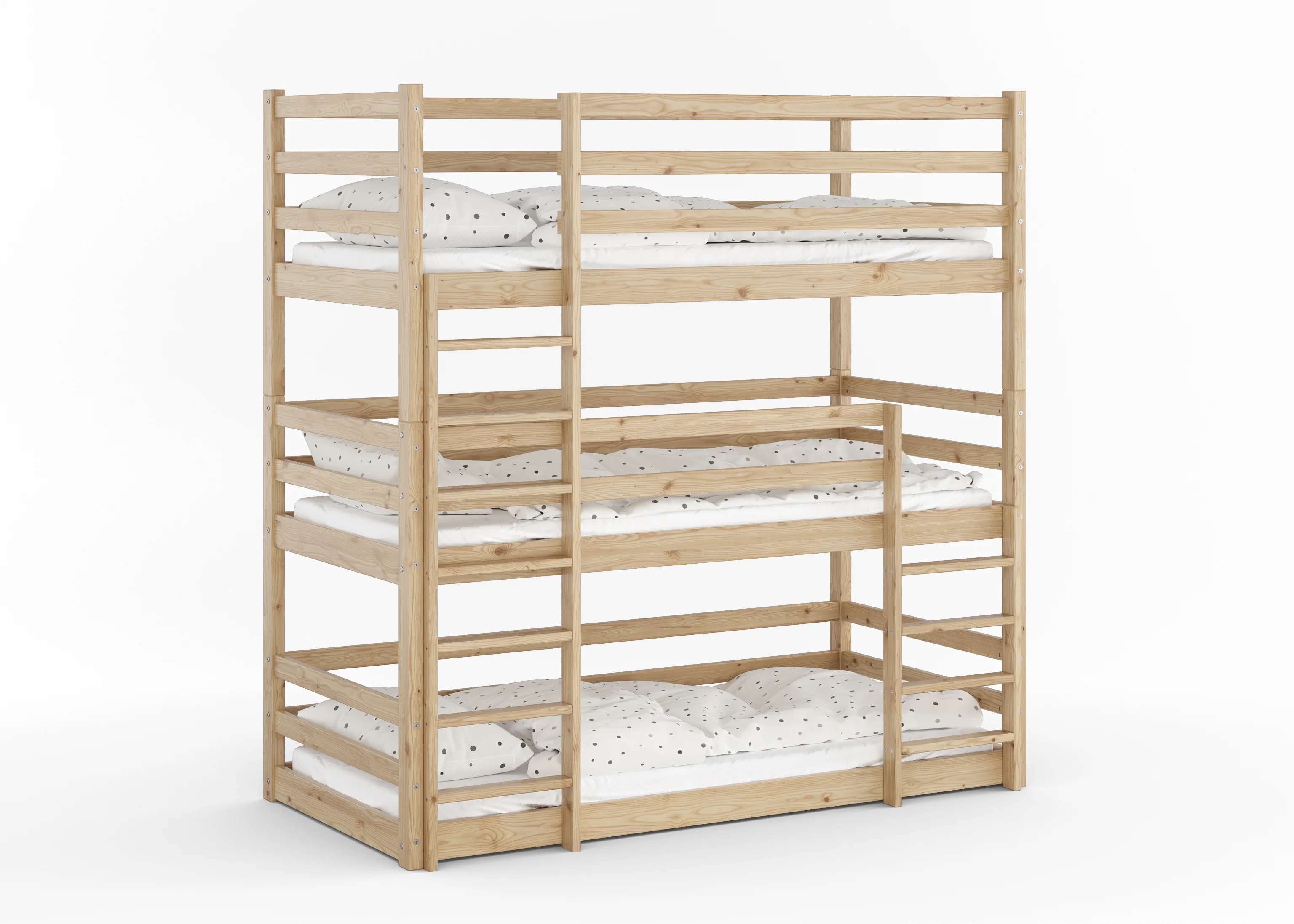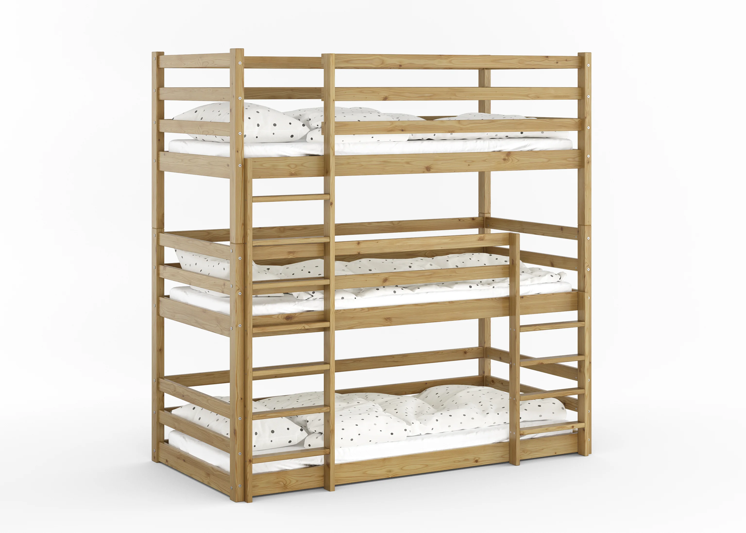 Śruby ukryte w strukturze drewna. Żadnych wystających elementów, o które można zahaczyć piżamą. Każdy kant jest ręcznie zaokrąglany dla maksymalnego bezpieczeństwa.