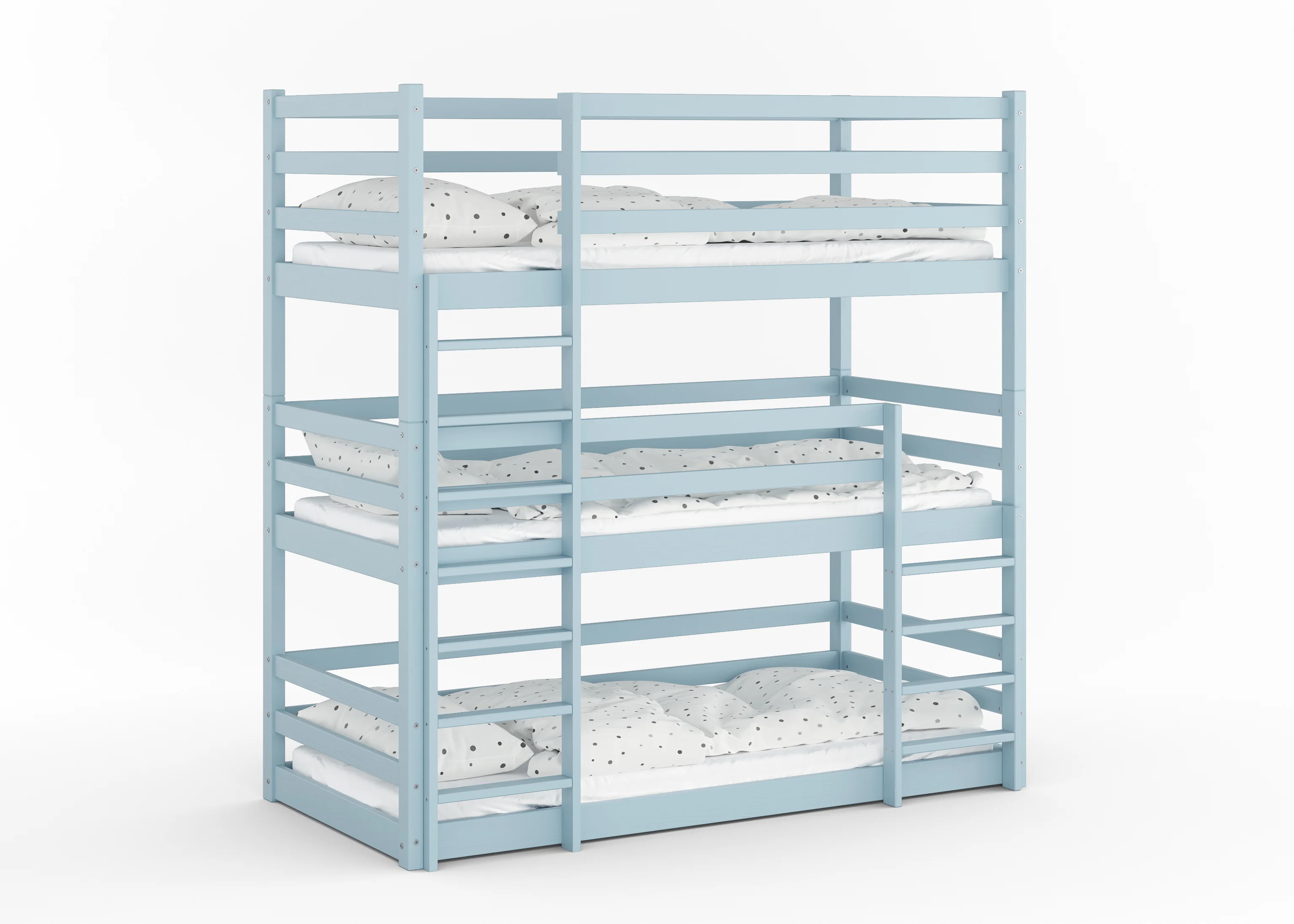 To mebel, który czerpie siłę z natury. Grube profile litego drewna i precyzyjne łączenia sprawiają, że łóżko stoi niewzruszenie – gotowe na skakanie, bitwy na poduszki i lata dorastania.