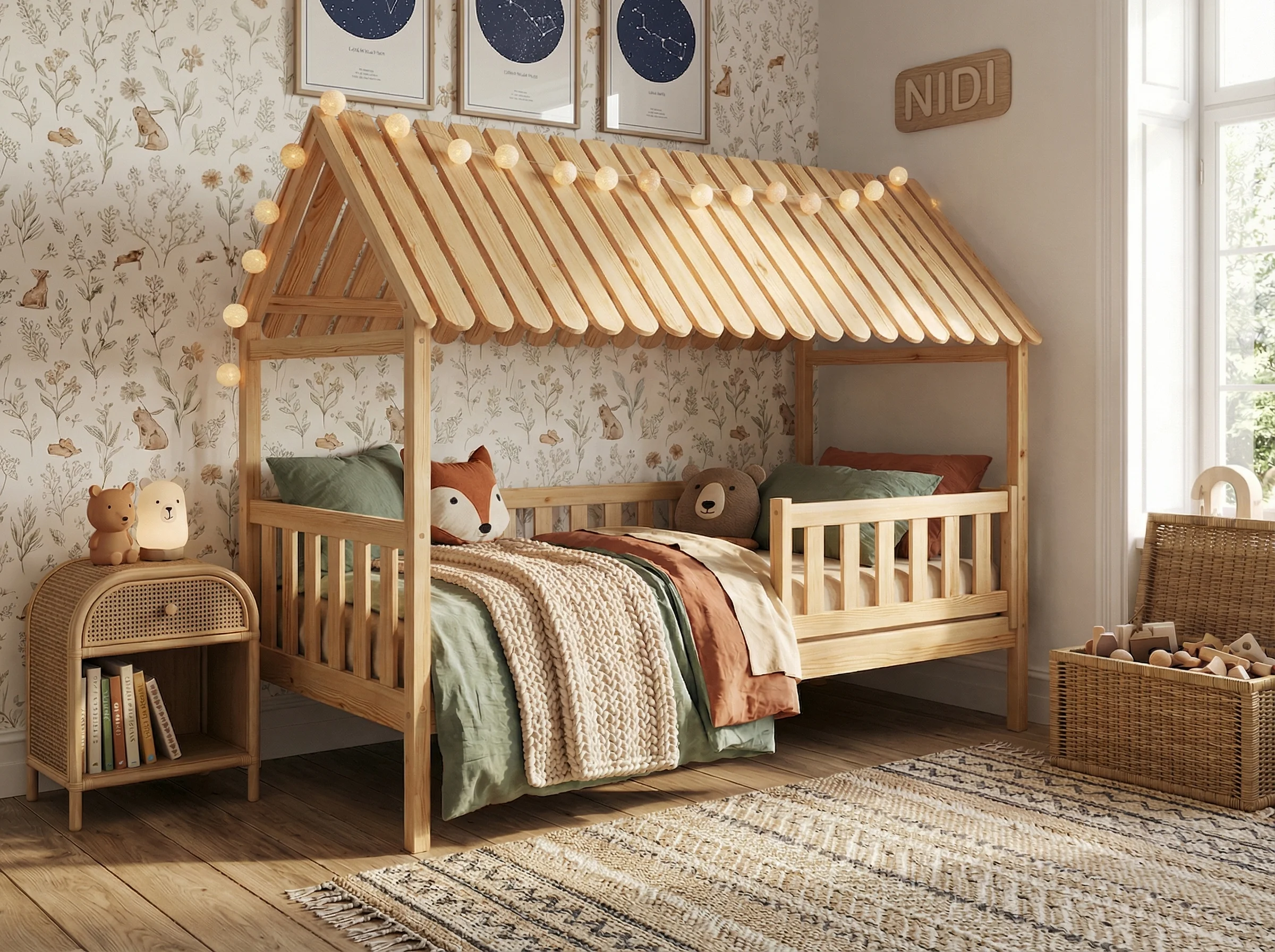 Łóżeczko Nidi to absolutny strzał w dziesiątkę! Wybraliśmy rozmiar 80x160 w naturalnym kolorze sosny. Wygląda przepięknie w pokoju córki, a ten kształt domku robi ogromne wrażenie, od razu zawiesiliśmy na nim lampki. Solidne drewno, nic nie trzeszczy, a do tego w pokoju unosi się piękny zapach lasu. Zdecydowanie polecam z całego serca!